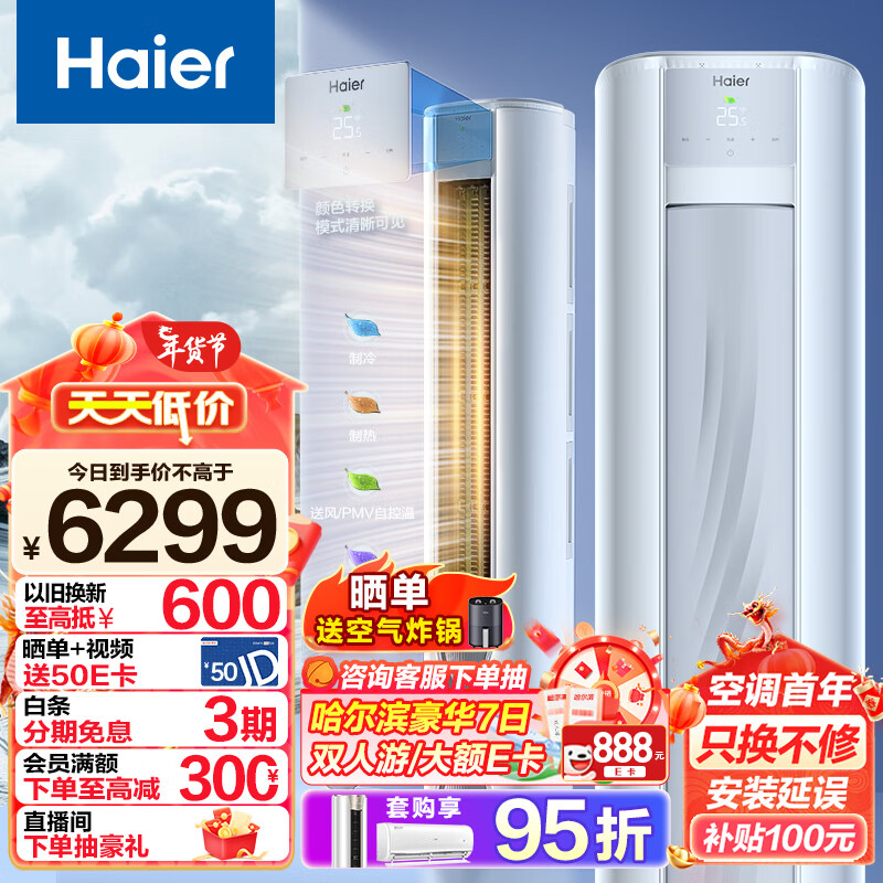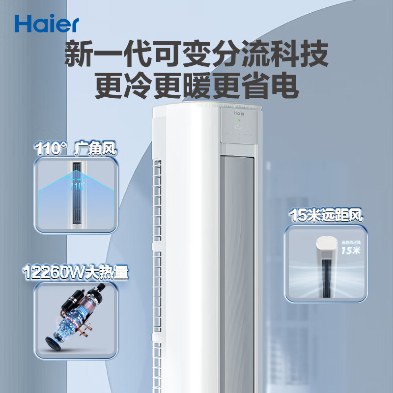海尔(Haier)劲爽 荣耀 3匹新一级能效 变频 冷暖 自清洁 家用空调立式柜机 KFR-72LW/A1FAA81U1 以旧换新价格:6299.00元!