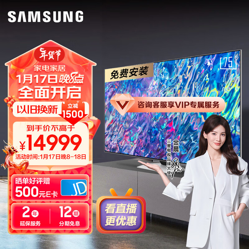 三星(SAMSUNG)75QN85C 75英寸 Neo QLED量子点 Mini LED电视 超薄4K 120Hz高刷 HDMI2.1 QA75QN85CAJXXZ价格:14999.00元!
