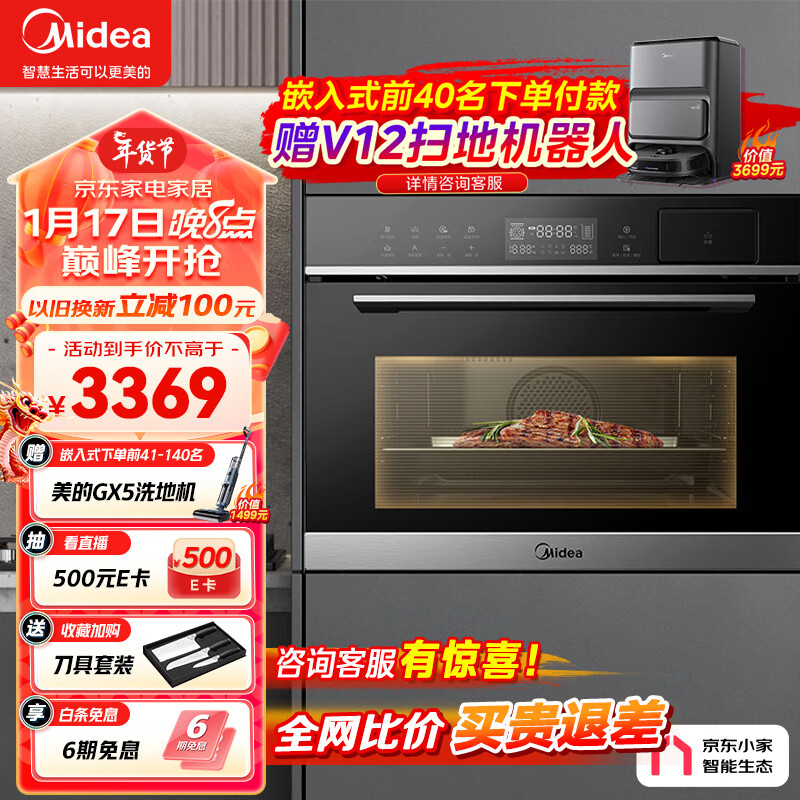 美的(Midea)嵌入式蒸烤箱一体机YA5048W(A50) 家用50L大容量多功能蒸箱烤箱二合一 搪瓷内胆 京东小家APP操控价格:3369.00元!
