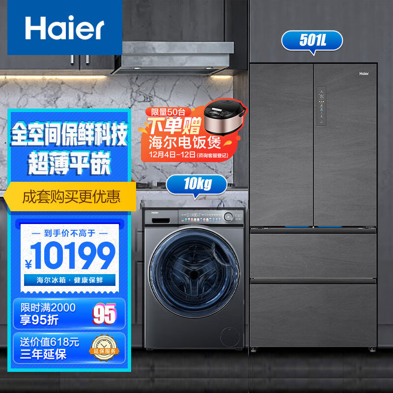 海尔(Haier)冰洗套装 海尔501升法式零嵌冰箱BCD-501WGHFD14S8U1+精华洗洗衣机 EG100MATESL6(附件仅展示)价格:10735.00元!