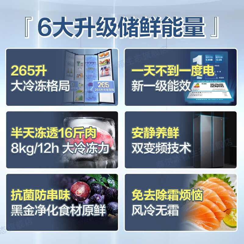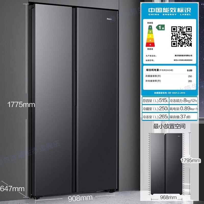 海尔(Haier)冰箱双开门对开门大冷冻一级能效双变频家用超薄风冷无霜智能黑金净化515L冰箱容量纤薄机身价格:3099.00元!