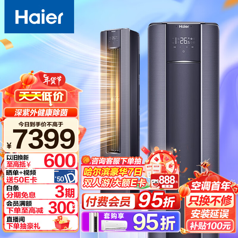 海尔(Haier)新一级变频 3匹 京彩 客厅空调立式柜机 布艺外观 京东小家智能 KFR-72LW/81@U1-La 以旧换新价格:7399.00元!