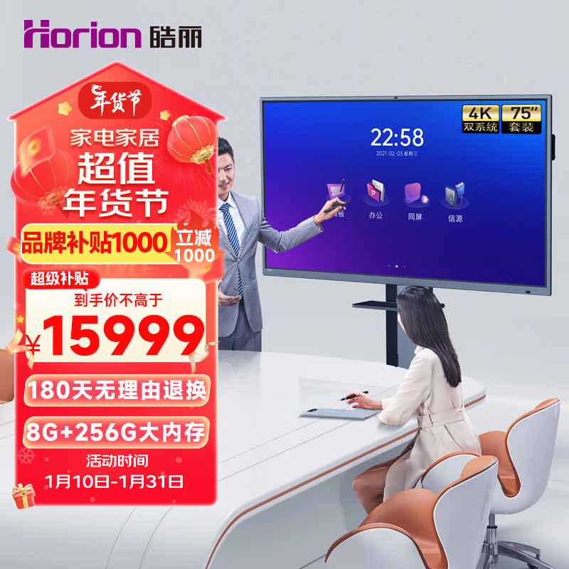 皓丽智能视频会议平板一体机75英寸触控触摸会议电视11代i7Win11/8+256智慧触屏商用会议室大屏套装价格:19149.00元!