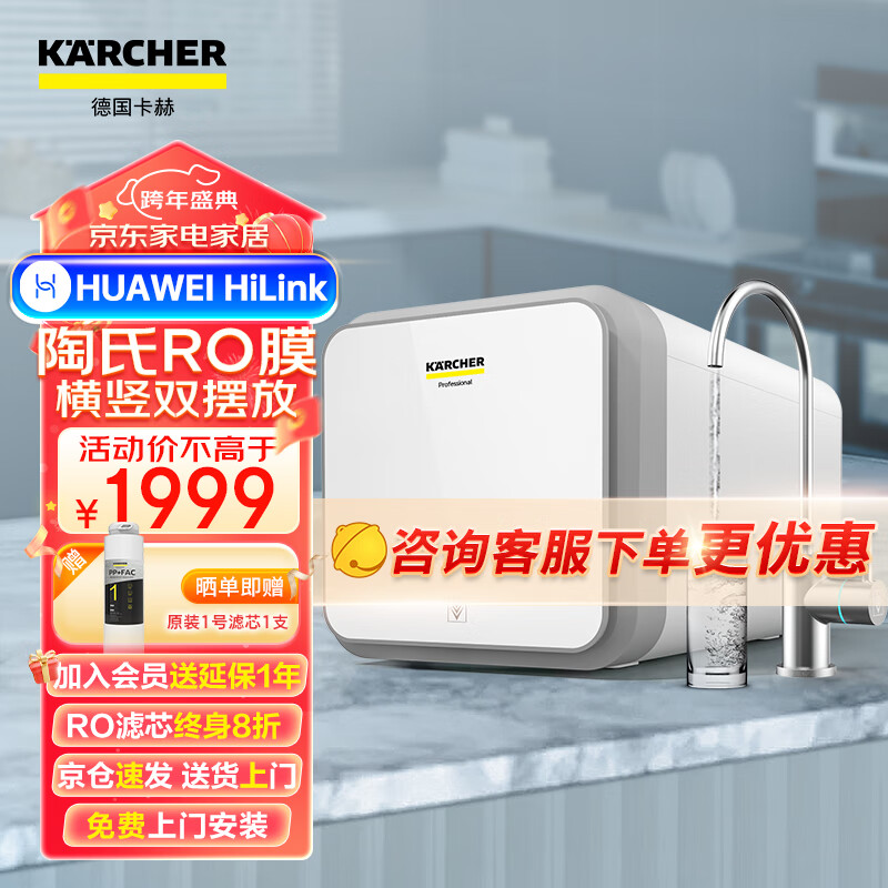 KARCHER净水器家用直饮净水机600G陶氏RO反渗透膜过滤器 1.7升/分 0阻垢剂 支持HUAWEI Hilink价格:2599.00元!