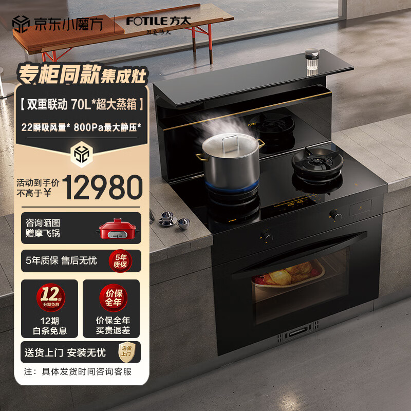 方太(FOTILE)集成灶 蒸烤炸一体集成灶 家用蒸箱蒸烤箱空气炸一体灶 64L大容量 烟灶联动 S5.i/ZK【专柜同款Y】价格:12980.00元!