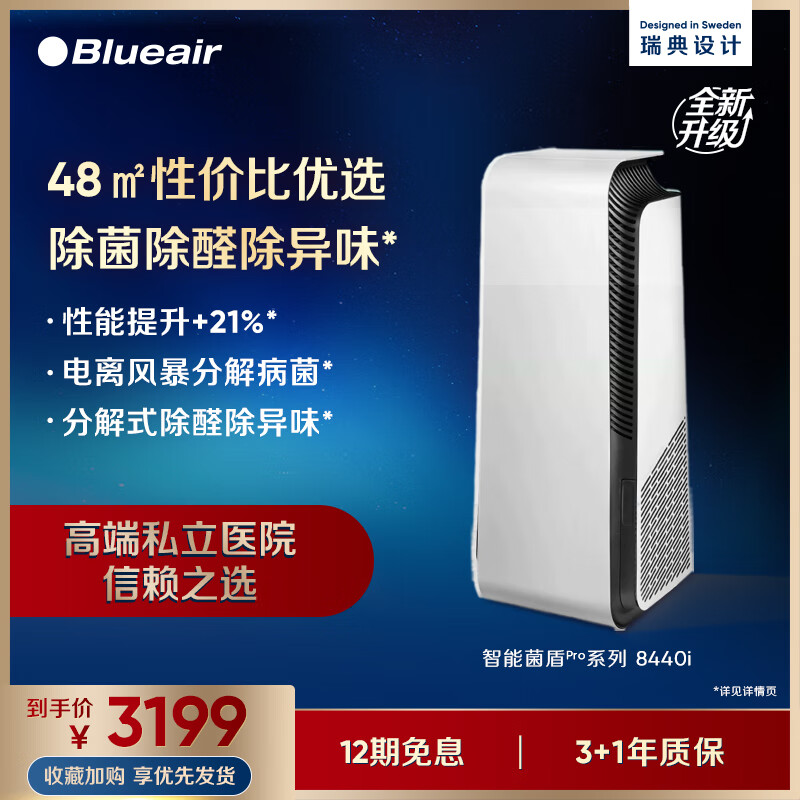 布鲁雅尔(Blueair)空气净化器 除甲醛除菌除敏除异味 母婴优选 净化多种污染直接分解甲醛 智能数显8440i价格:3199.00元!