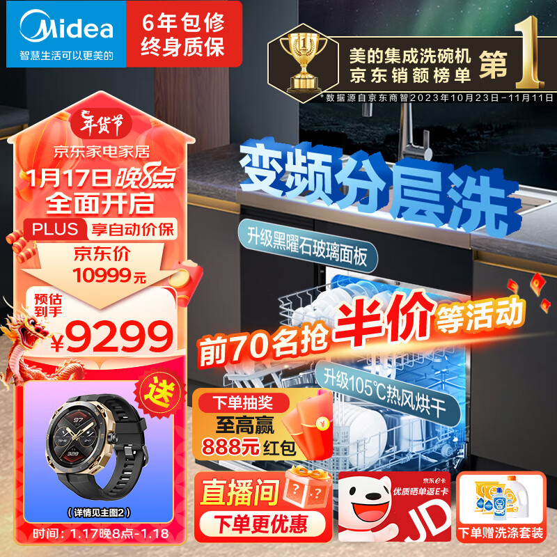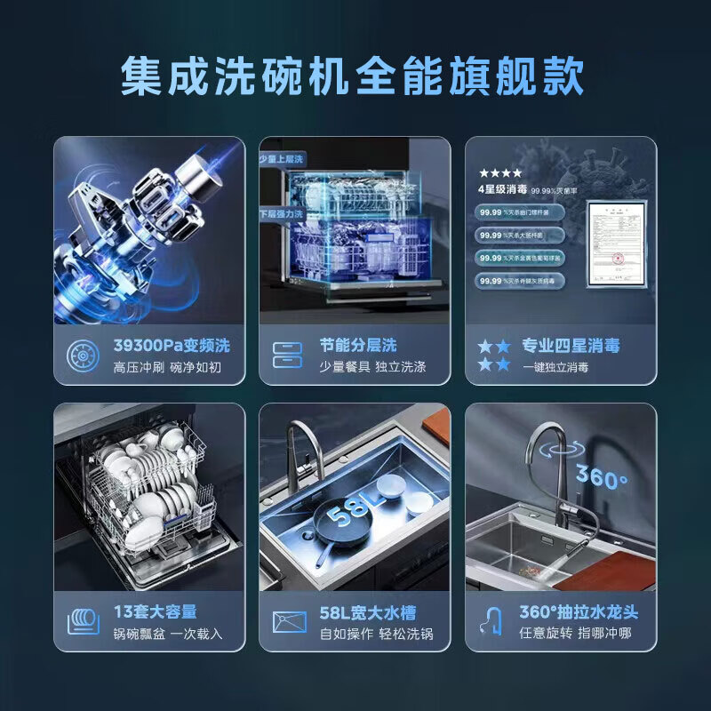 美的集成水槽变频洗碗机一体式13套分层洗光触媒净味超一级水效集成洗碗机 集成洗碗机XH09价格:9299.00元!