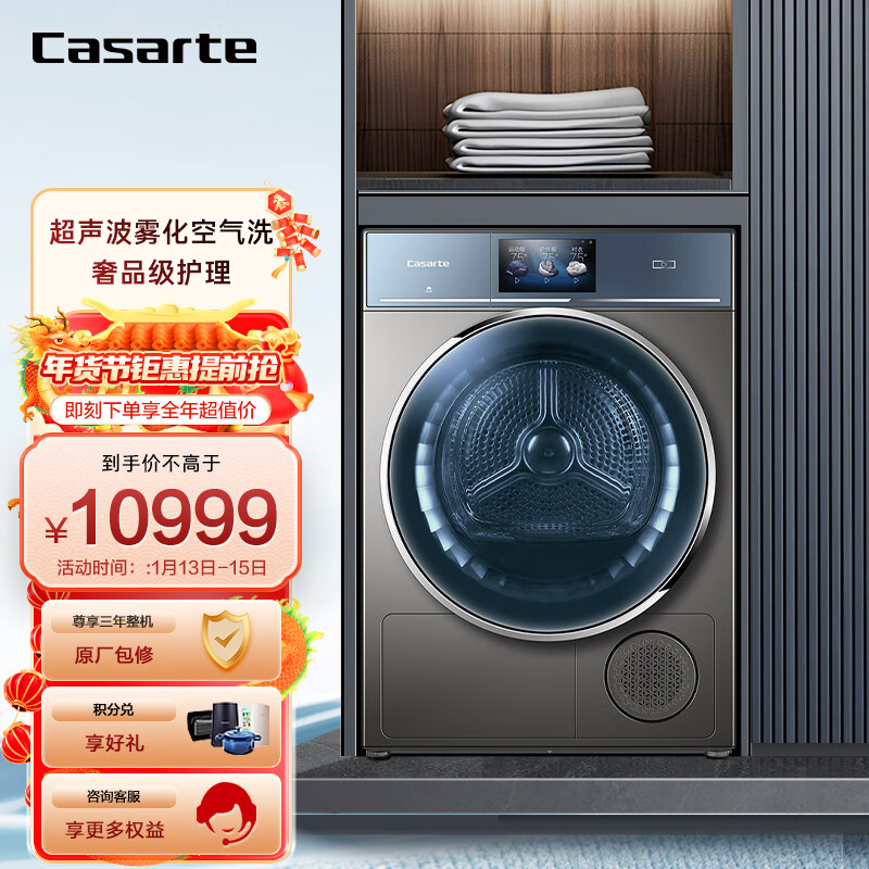 卡萨帝(Casarte)烘干机 奢品级护理双擎热泵式小型家用衣物干衣机护理机10Kg全自动滚筒式 ECGY10FS3U1价格:10999.00元!