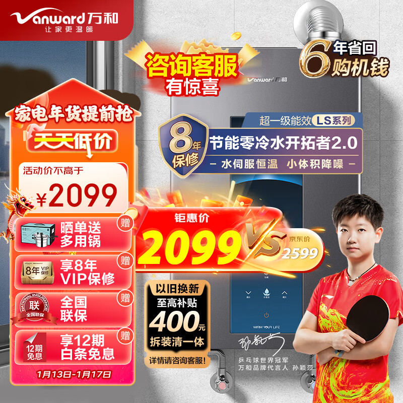 万和(Vanward)燃气热水器16升零冷水水伺服恒温一级能效冷凝式小体积降噪天然气增压MLS5D16以旧换新价格:2599.00元!