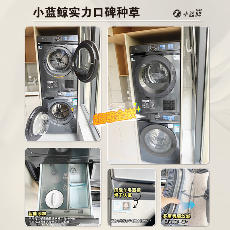 小天鹅(LittleSwan)洗烘套装 10KG滚筒洗衣机全自动+热泵烘干机 超薄全嵌超微净泡【小蓝鲸青春版】TG100V86PLUS+VH88价格:9999.00元!