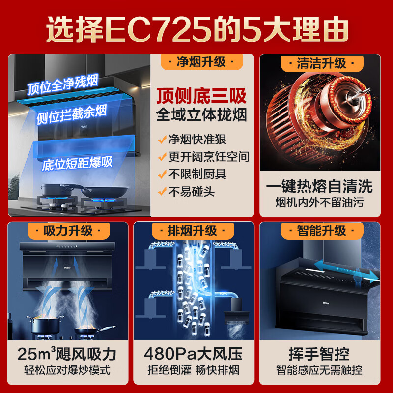 下面笔者为大家介绍海尔CXW-358-EC725的质量参数,还有这款的开始销售的时间和用户的评价等等,如果你对此款感兴趣的话,不妨一起来瞧一瞧!订了套机,说是分装发。目前只收到烟机,还没收到灶。待到齐安装后再评价。
