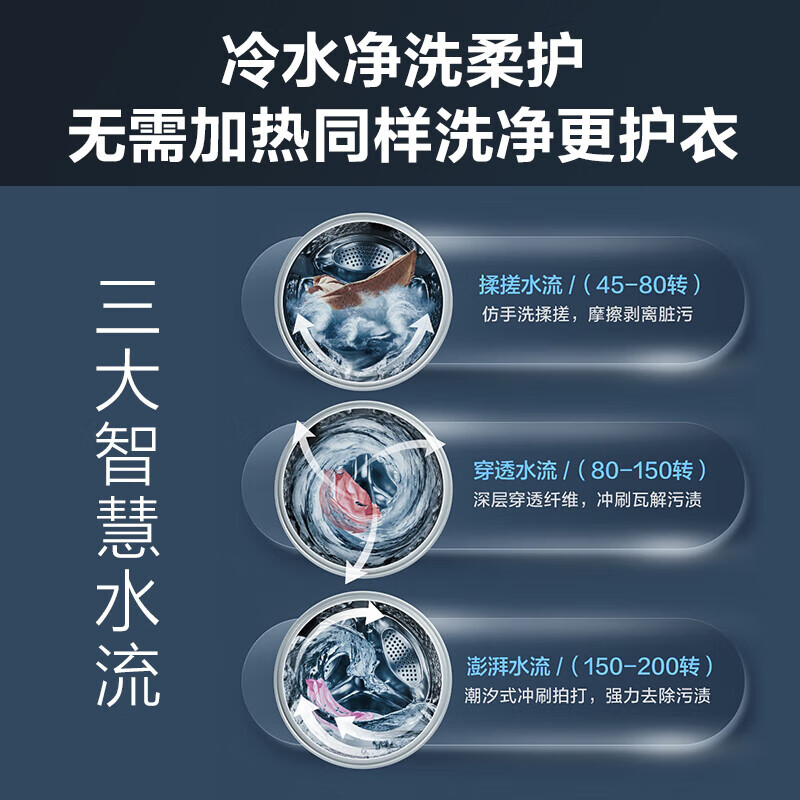 4、外形外观:很好看洗净效果:洗衣服很干净容量大小:10公斤这是我第二个同款洗衣机。