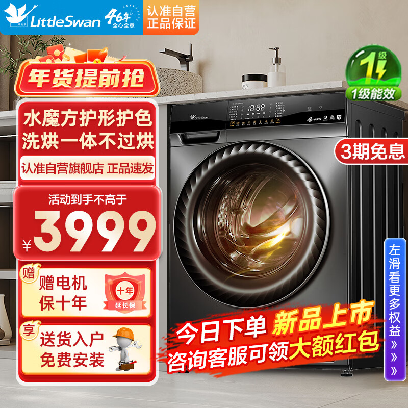 小天鹅(LittleSwan)水魔方全自动智能投放洗衣机 超薄机身10公斤滚筒 TD100VT616WIADY-T1B升级款 洗烘一体价格:3399.00元!
