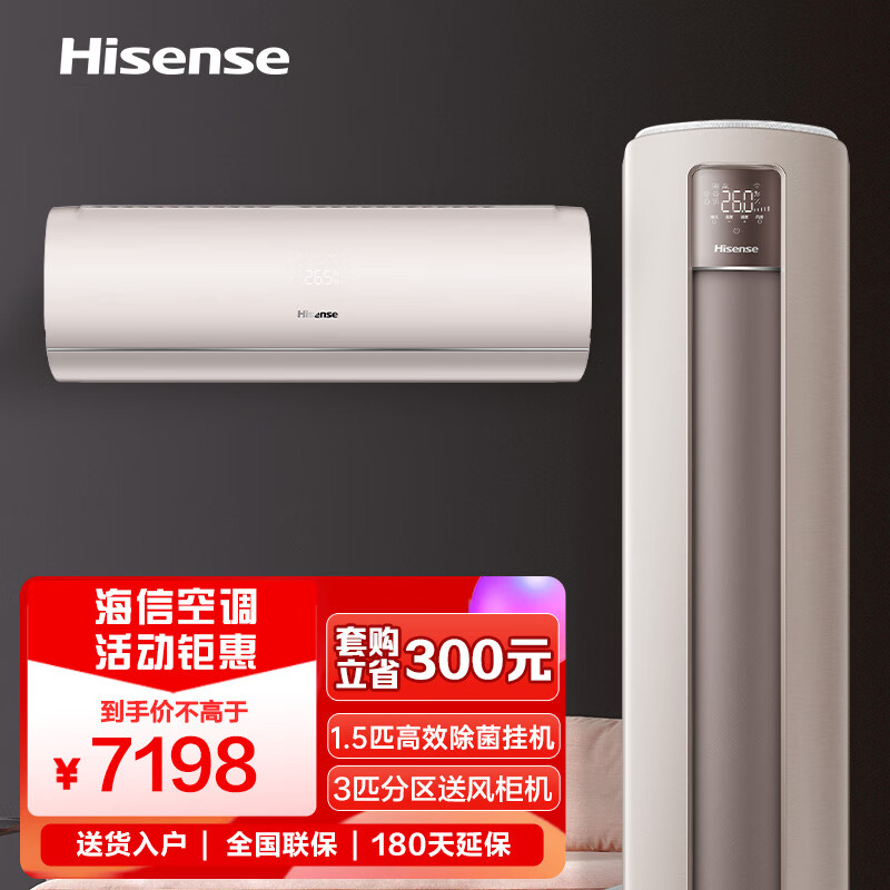海信1.5匹高效净化空调+海信3匹分区送风空调价格:7198.00元!