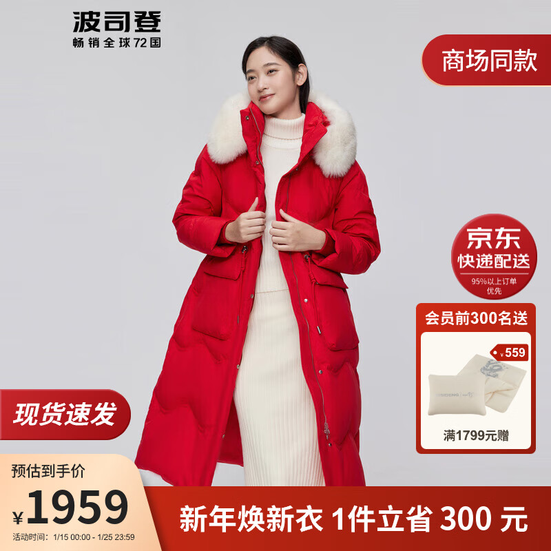 波司登2023冬季羽绒服女新年红本命年加厚长款可脱卸帽大毛领B30145266价格:2259.00元!