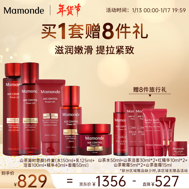 梦妆山茶塑颜5件套(洁面+水+精华+乳+面霜) 补水保湿护肤套装新年礼物价格:1256.00元!