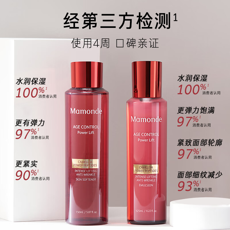 3、这款梦妆山茶凝时塑颜水150ml+乳125ml+红小胖50ml淡纹保湿修复护肤套装买来送妈妈的,买了好多次了,很不错,性价比高。