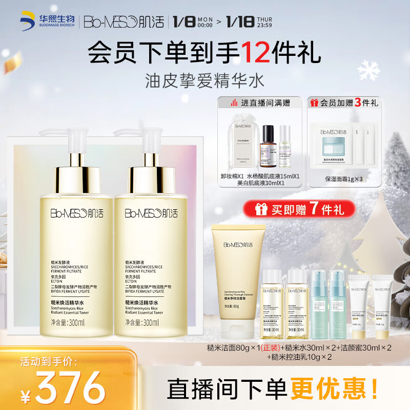肌活(Bio-MESO)糙米精华水套装礼盒300ml*2瓶爽肤水补水保湿生日礼物送女友价格:406.00元!