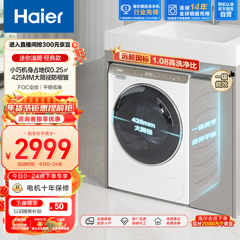 海尔(Haier)迷你滚筒洗衣机全自动 3.5KG超薄平嵌 儿童洗衣机婴儿洗衣机小型内衣洗95℃高温除菌XQGM35-B80CU1价格:2999.00元!