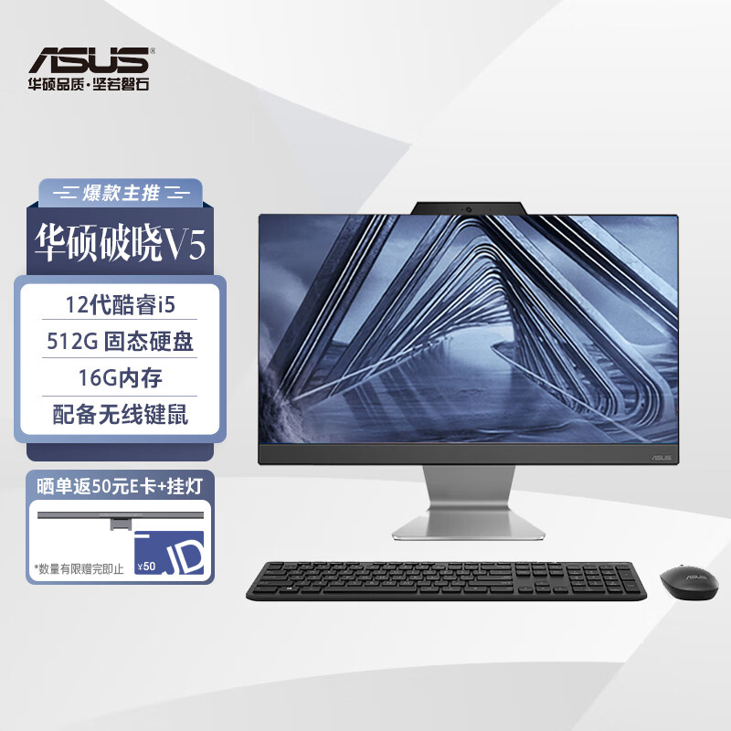 华硕破晓V5 23.8英寸家用商用一体机电脑台式电脑(12代i5-1235U 16G 512G固态 WIFI6蓝牙)黑价格:3799.00元!