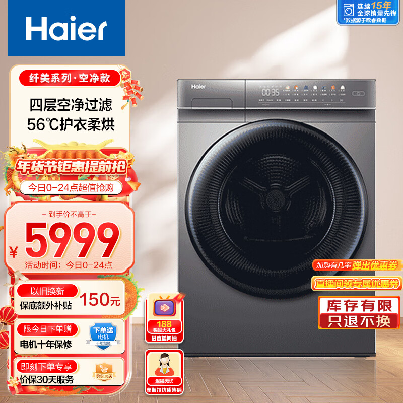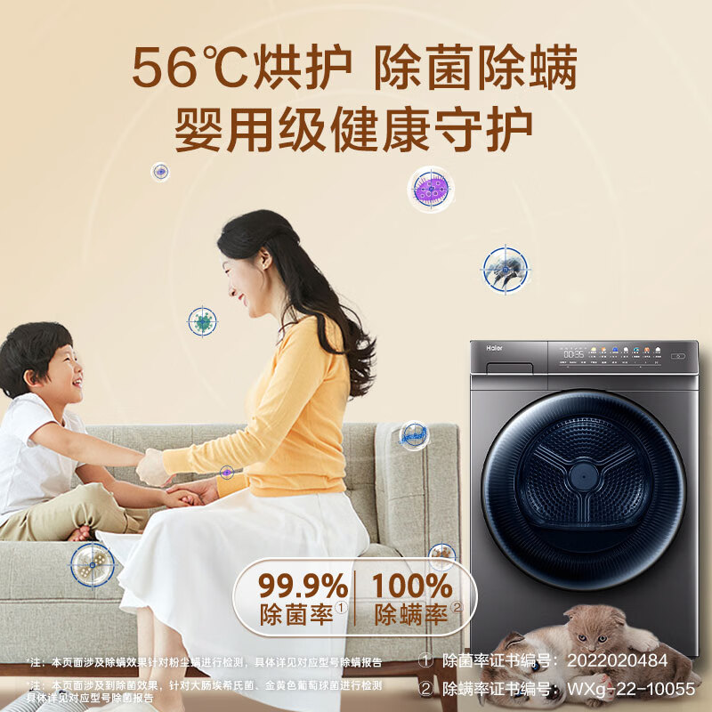 海尔(Haier)晶彩烘干机家用 10公斤热泵干衣机 wifi智能预约 负离子空气洗 除菌祛螨 EHG100F61SU1 以旧换新价格:5999.00元!