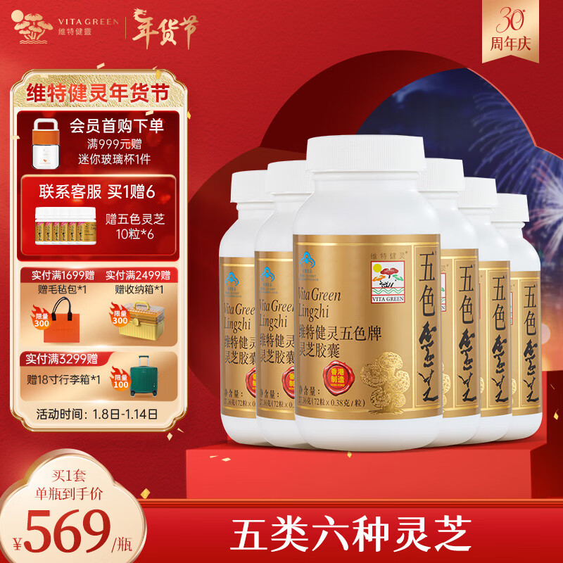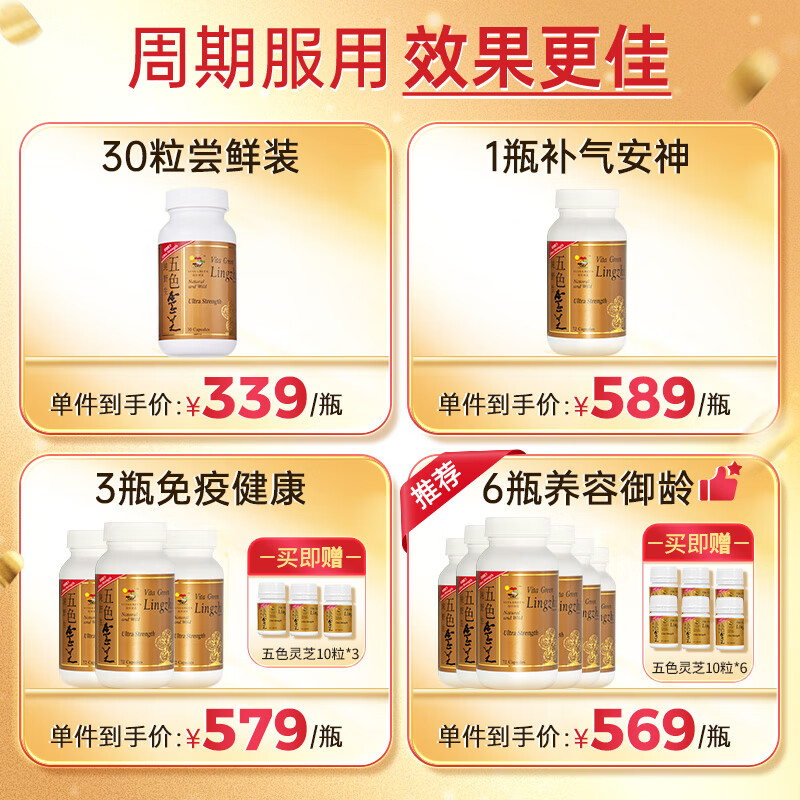 维特健灵 五色灵芝胶囊增强免疫力中国香港生产 72粒/盒 6盒装 礼品 送礼 送长辈价格:4194.00元!