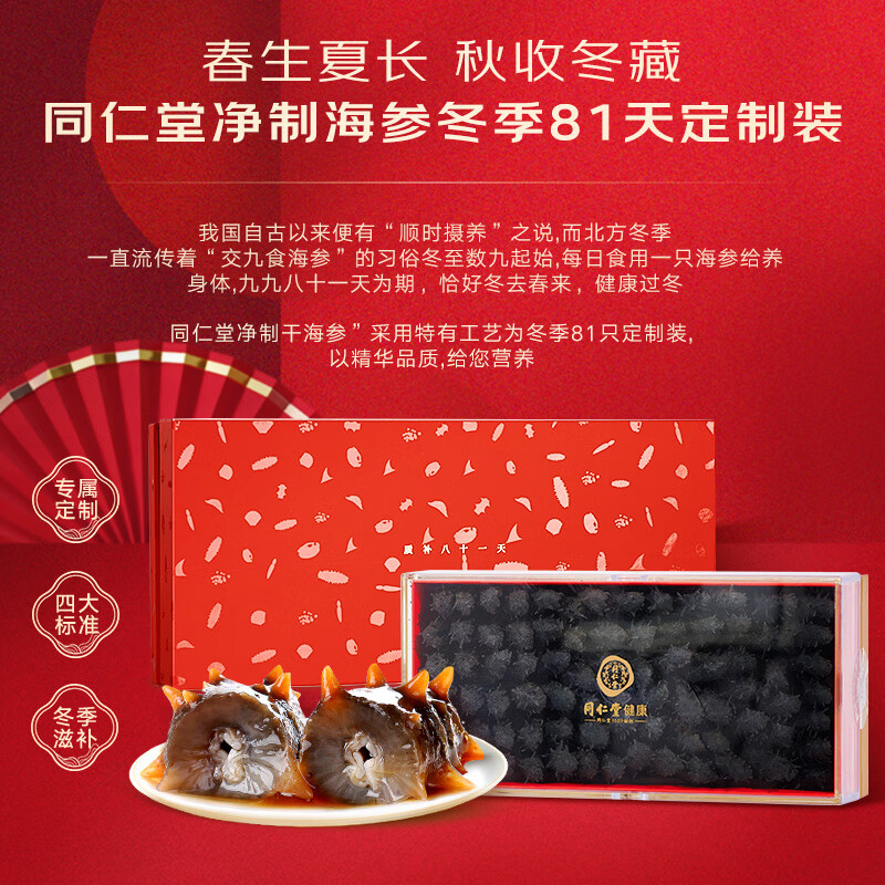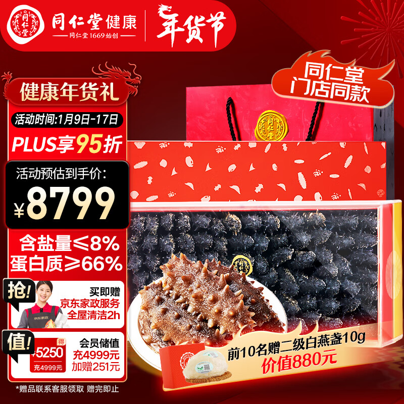 同仁堂(TRT)北京同仁堂大连淡干海参辽参净制380g约79-81只海参干货 过年礼盒价格:8799.00元!