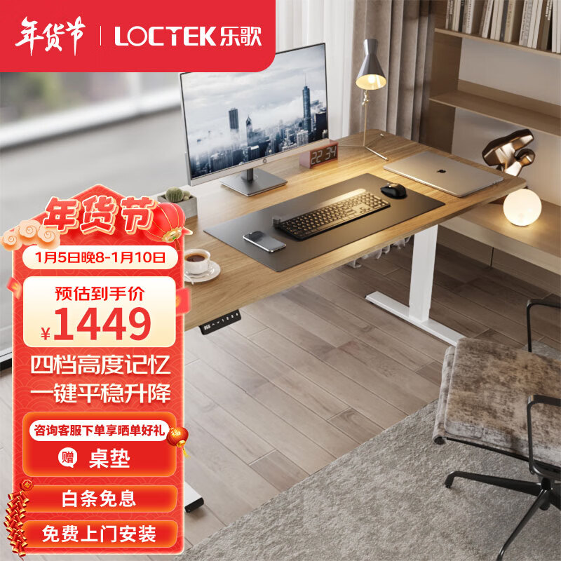 乐歌电动升降电脑桌站立式书桌家用台式写字桌青春派E2原木色1.6m桌价格:1599.00元!