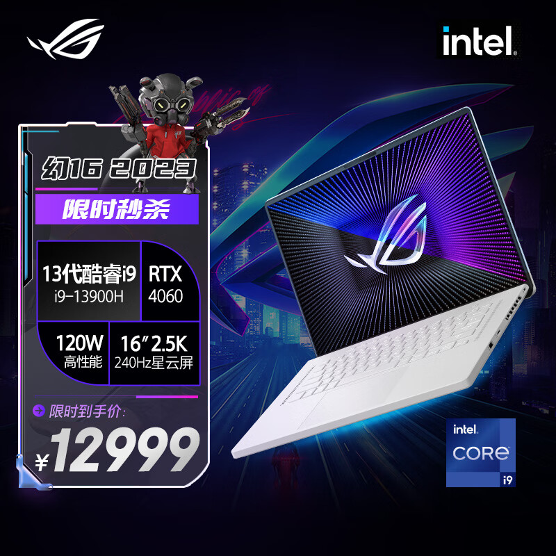ROG幻16 2023 第13代酷睿i9 16英寸 星云屏设计师轻薄高性能游戏本笔记本电脑(i9-13900H 32G 1T RTX4060)白价格:12999.00元!