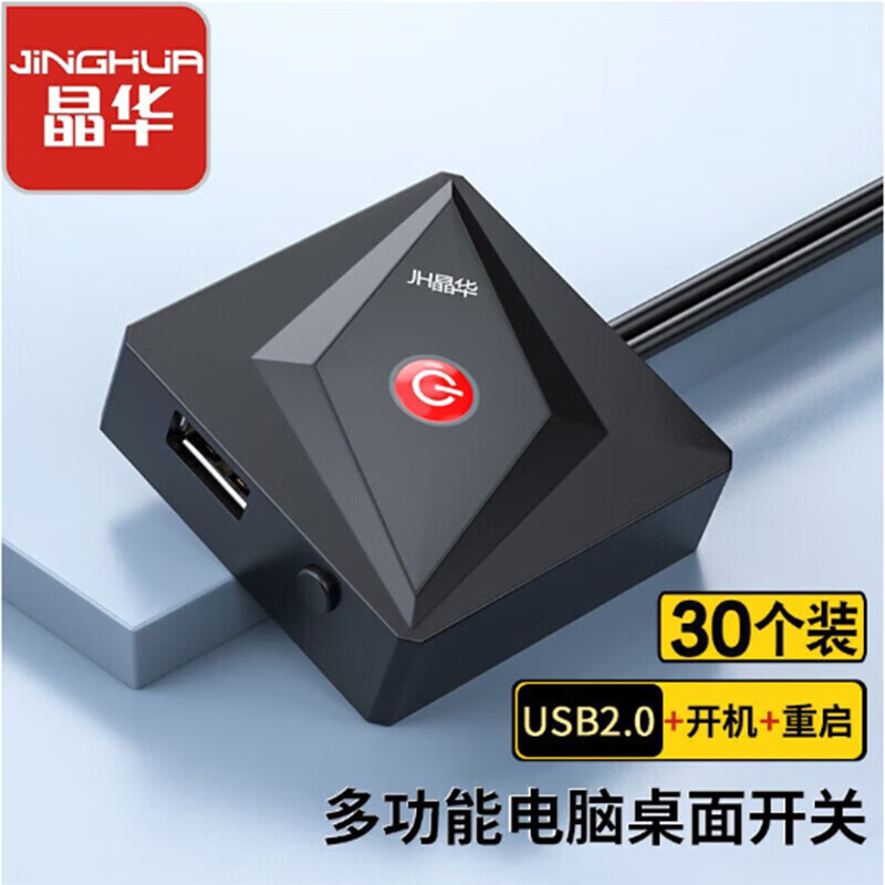 晶华(JH)电脑桌面开关 网吧网咖电源家用台式主机外置外接USB一键重启开机启动按钮 黑色 30个装 K175价格:619.00元!