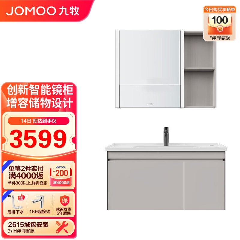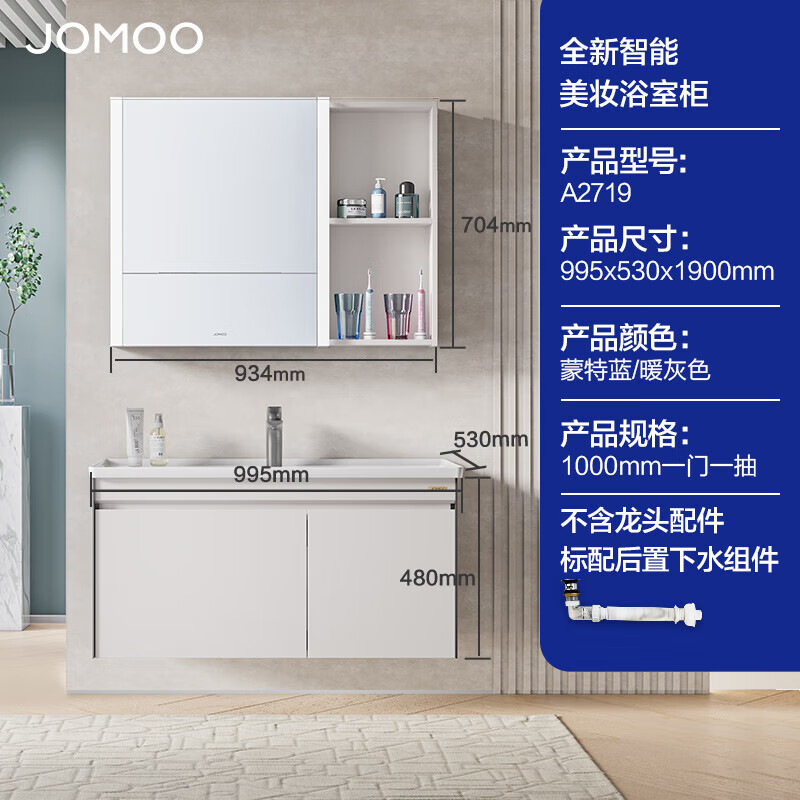 九牧(JOMOO) 浴室柜陶瓷一体盆意式美妆收纳智能组合柜100cm A2719-16HX-1价格:4363.00元!