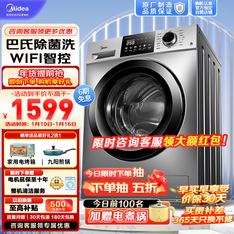 美的(Midea)全自动 滚筒10公斤大容量洗衣机 巴氏除菌洗 专业羽绒服洗 BLDC变频电机 以旧换新MG100VC133WY价格:1599.00元!