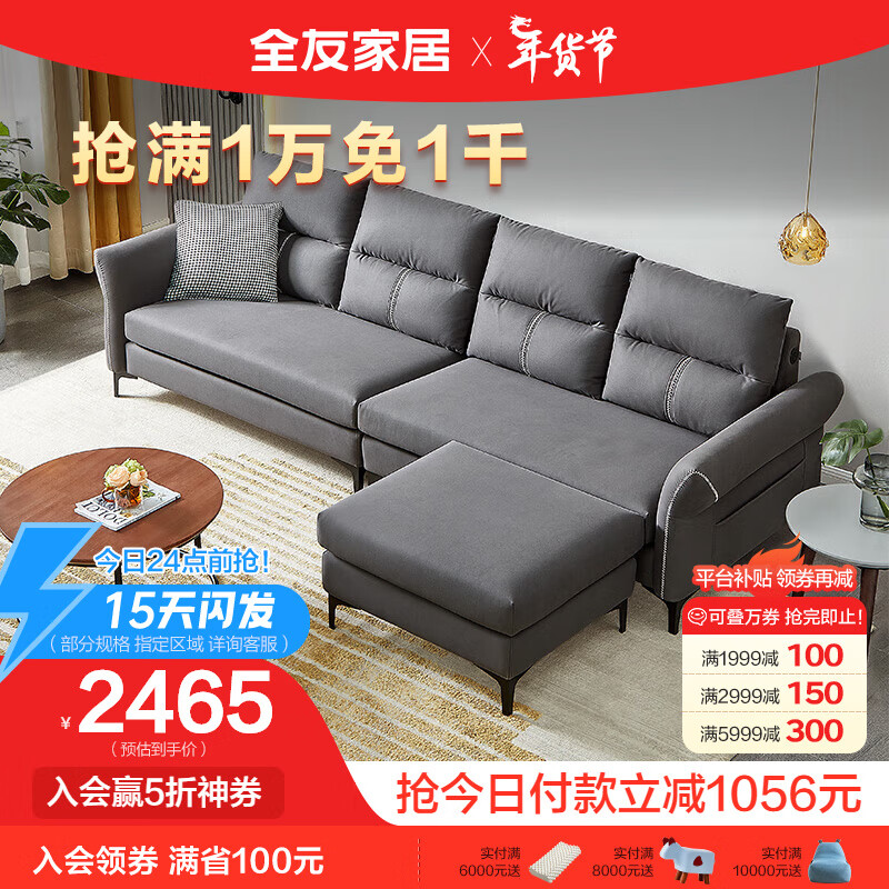 全友家居 现代简约usb充电功能科技布可拆洗储物沙发客厅家具102679A价格:3521.43元!