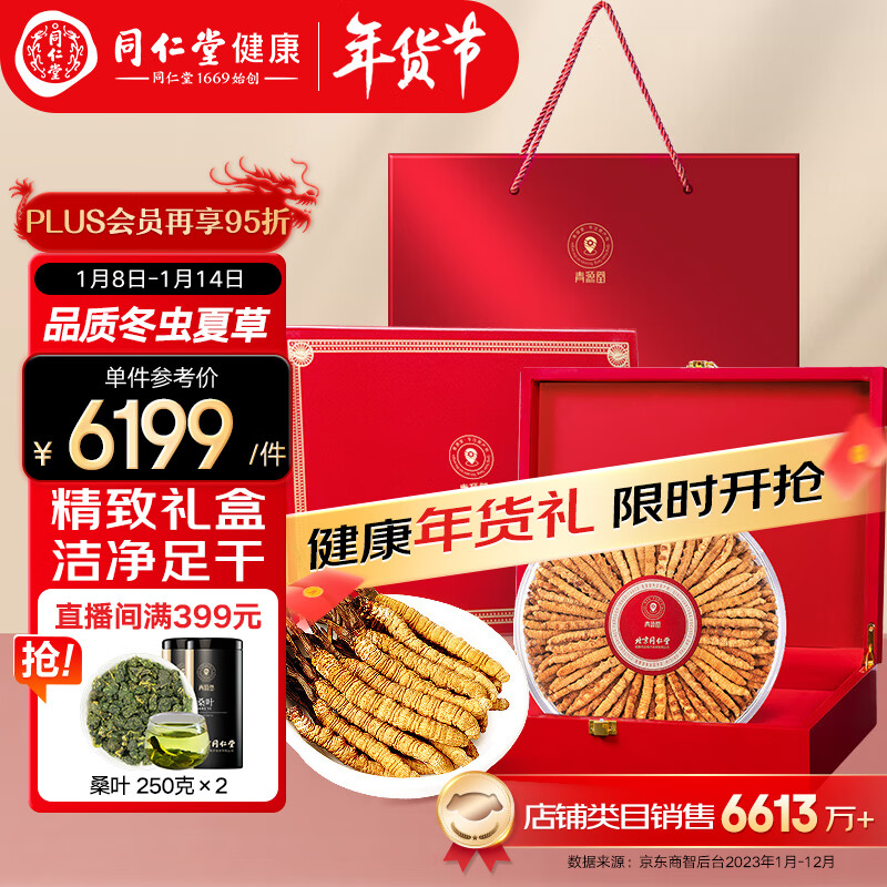 北京同仁堂 青源堂【年货礼盒送长辈】 冬虫夏草 4条/g 36克礼盒 虫草 无竹签无断草冻干干虫草送父母礼品价格:6199.00元!