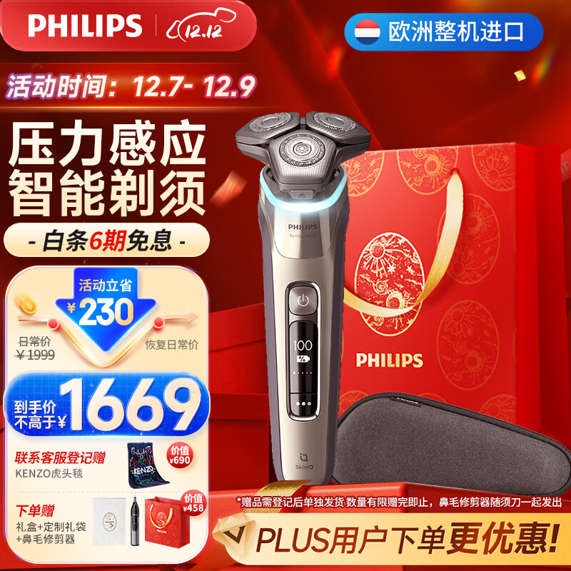 飞利浦(PHILIPS)男士电动剃须刀9系Pro SkinIQ智能光感刮胡刀欧洲原装进口【礼物送男友送爸爸】S9983/95价格:1799.00元!