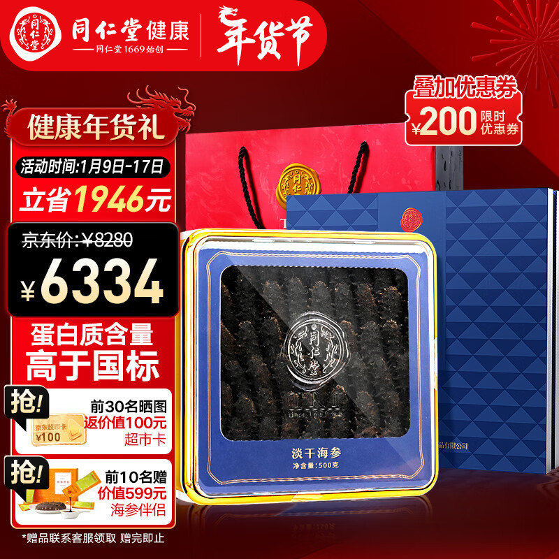 同仁堂(TRT)北京同仁堂大连淡干海参辽参500g60-90只海参干货过年礼盒 青源堂价格:7866.00元!