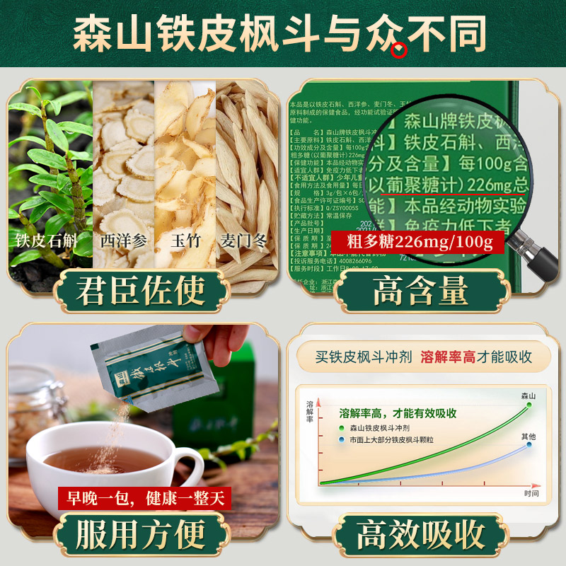 森山森山铁皮枫斗冲剂3g/包60包/盒*3盒配置参数: