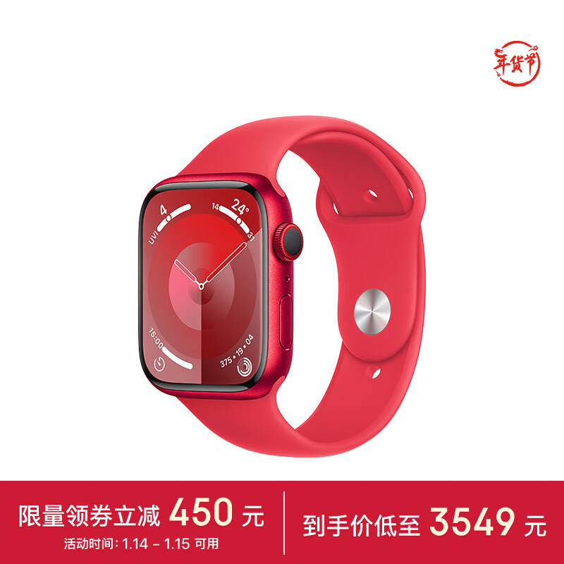 Apple/苹果 Watch Series 9 智能手表GPS+蜂窝款45毫米红色铝金属表壳红色运动型表带M/L健康手表S9 MRYH3CH/A价格:3999.00元!