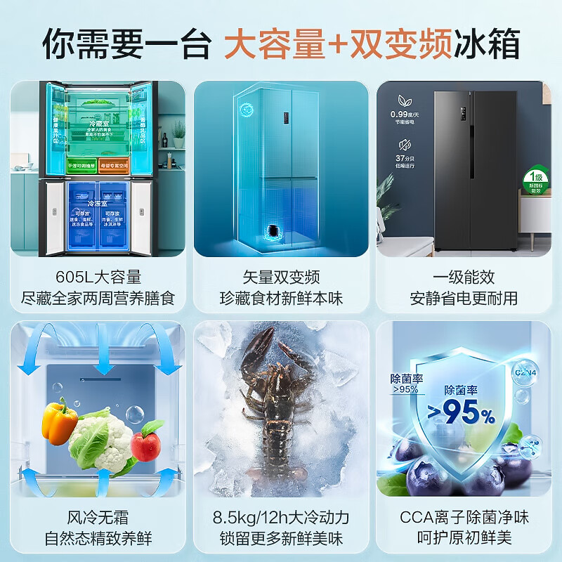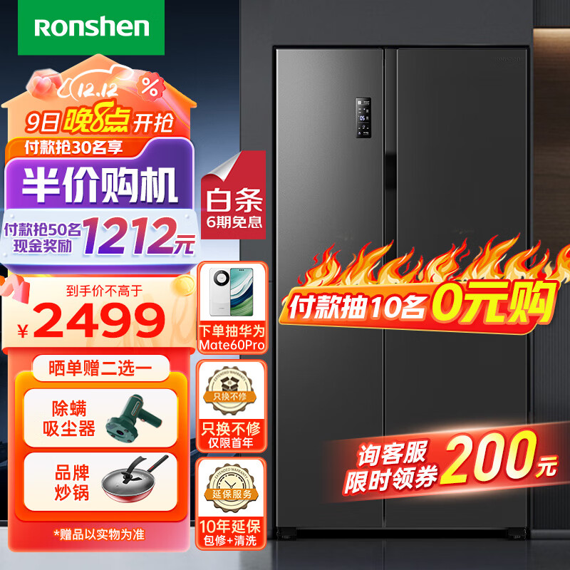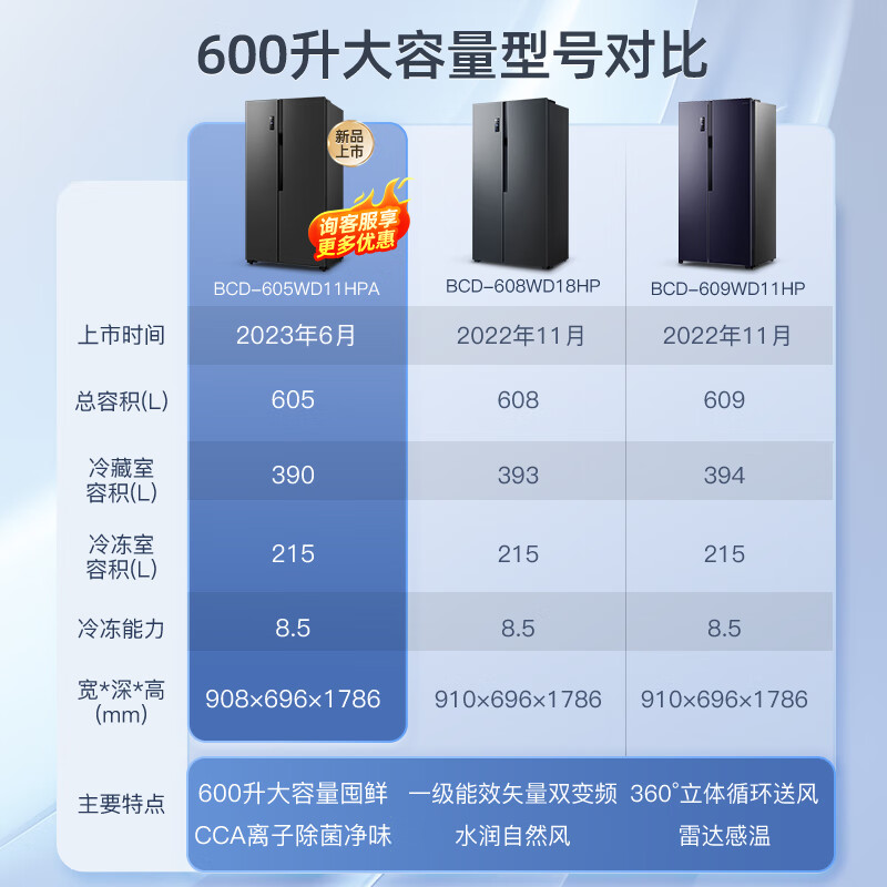 容声(Ronshen)冰箱双开门对开门605升大容量一级能效风冷无霜CCA离子除菌净味家用升级款电冰箱BCD-605WD11HP价格:2699.00元!
