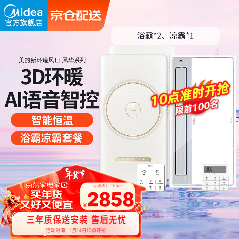 美的(Midea)风暖浴霸集成吊顶卫生间取暖器浴室环形智能双电机语音换气暖风机价格:2858.00元!