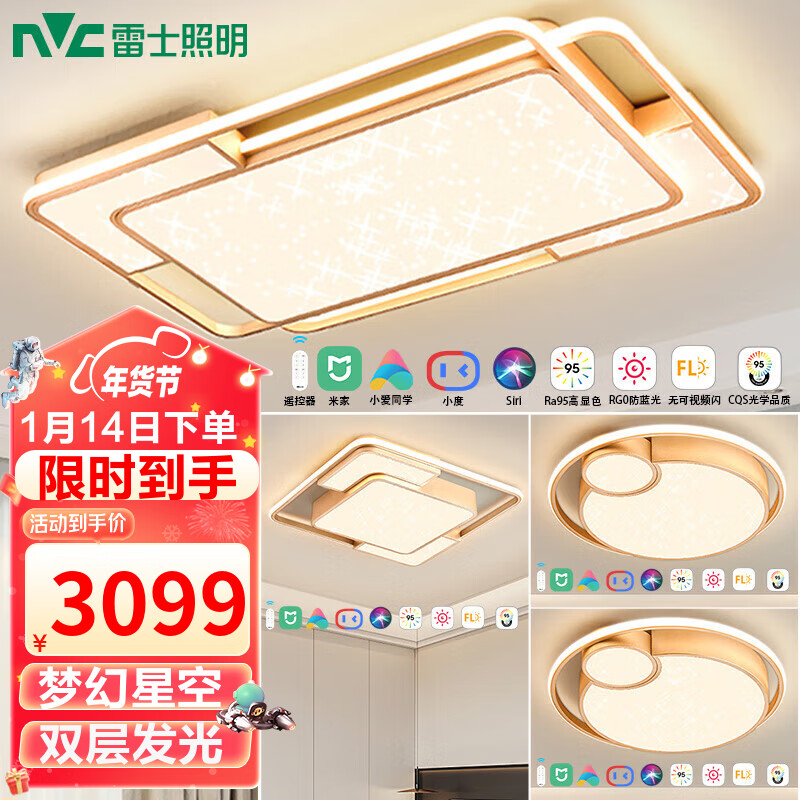 雷士(NVC)智能吸顶灯后现代超薄客厅卧室餐厅 AI智控调光-金玉灵智控套餐价格:3799.00元!