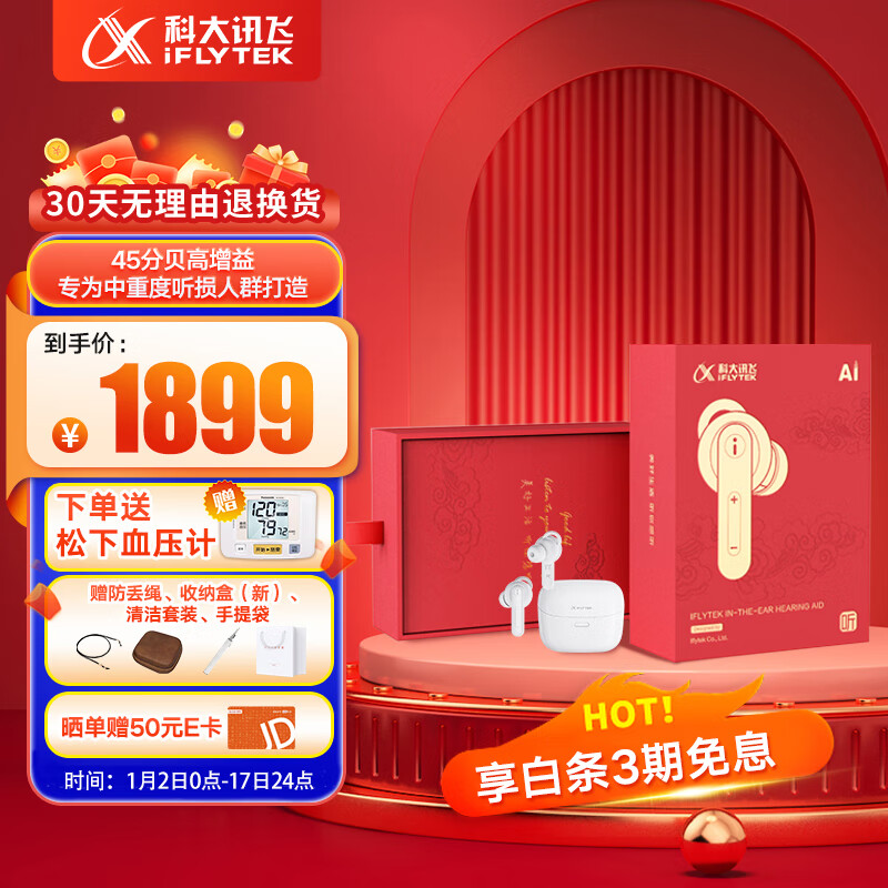 科大讯飞耳内式助听器老年人耳聋耳背无线入耳式隐形充电耳机 中重度32通道双耳降噪-尊享礼盒版【白色】价格:2199.00元!