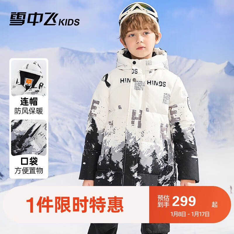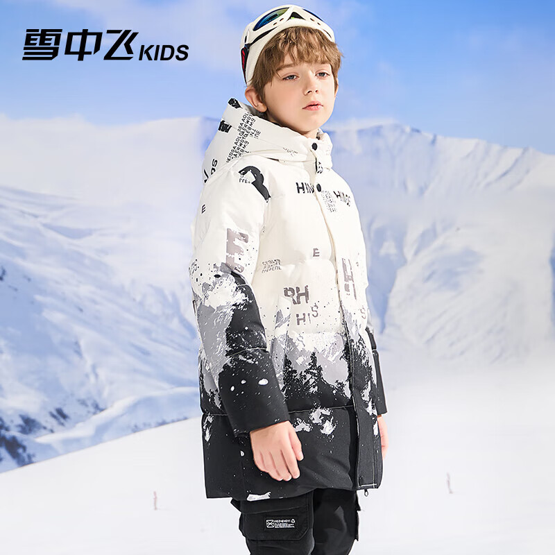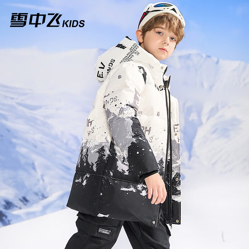 雪中飞童装男童羽绒服冬季中大童洋气女童儿童羽绒服黑白风景110cm价格:699.00元!