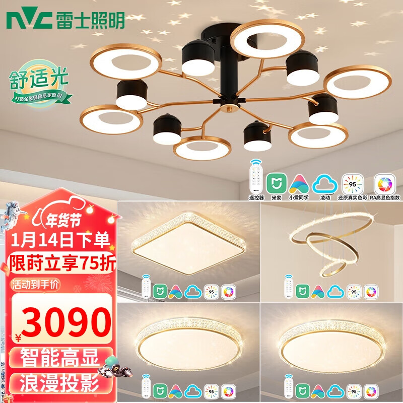 雷士(NVC)北欧吊灯星空投影客厅灯现代智能高显舒适光大瓦数WHXD80Z/F-03价格:4119.00元!