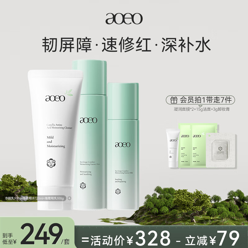 AOEO海葡萄水乳套装护肤品套装补水保湿洗面奶100g+水120ml+乳100g价格:328.00元!