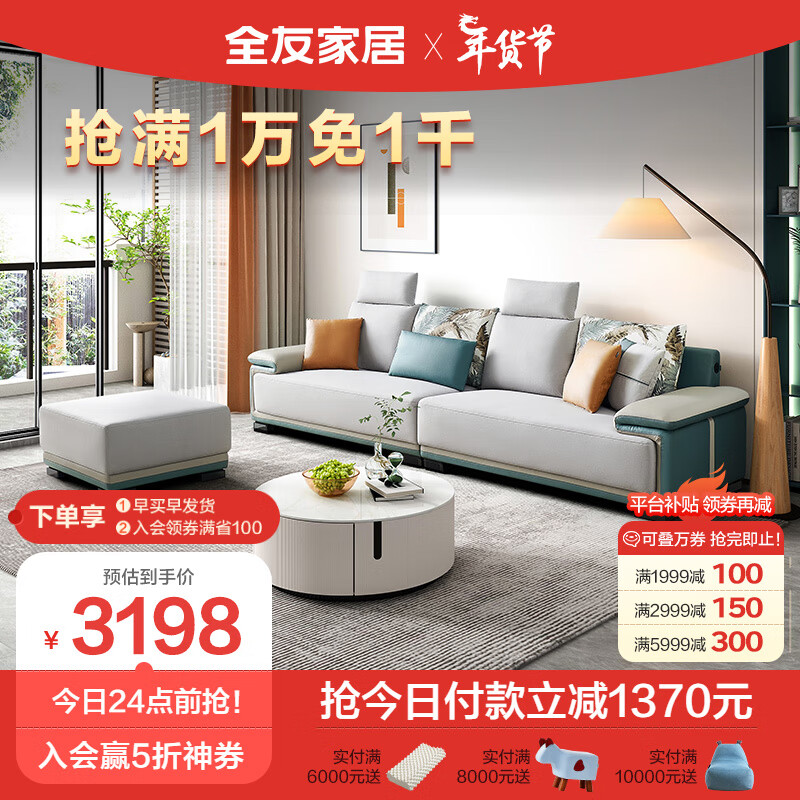 全友家居 沙发现代简约皮布沙发可拆洗科技布艺沙发客厅家具102702价格:4568.57元!