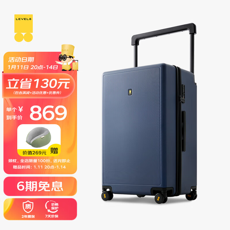 地平线8号(LEVEL8)行李箱 男女密码大容量万向轮26英寸宽拉杆大旅行家PC拉杆箱 蓝色价格:999.00元!