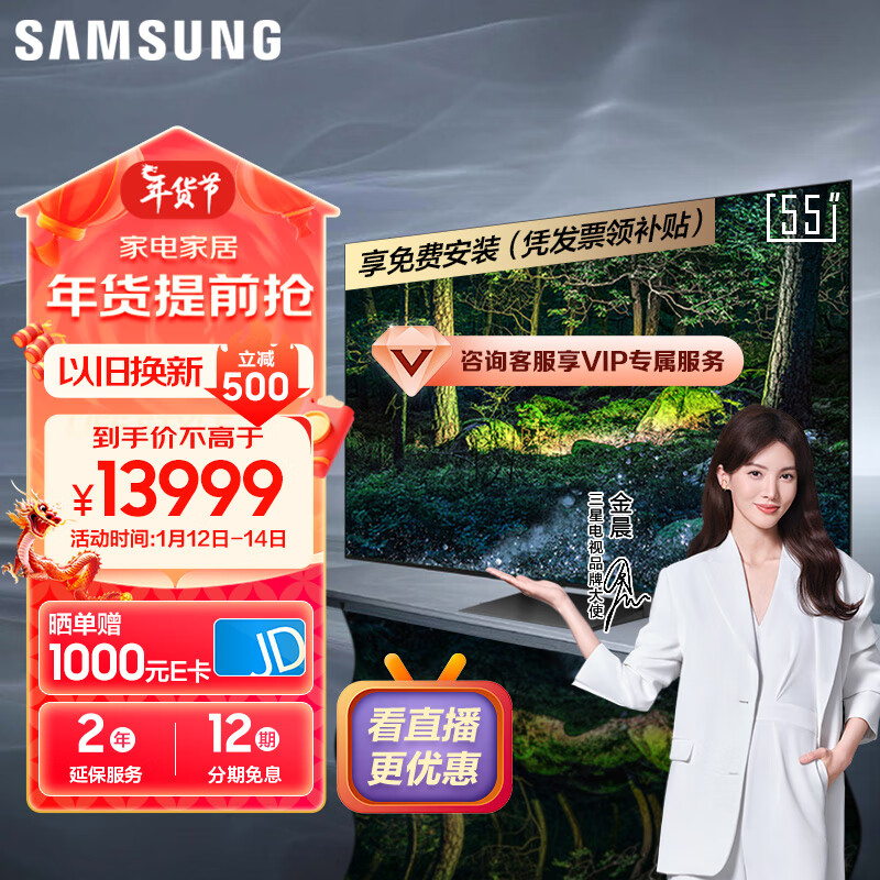 三星(SAMSUNG)55S95Z 55英寸 OLED量子点电视 超薄4K 144Hz 超薄屏 无开机广告 HDMI2.1 QA55S95ZAJXXZ价格:13999.00元!