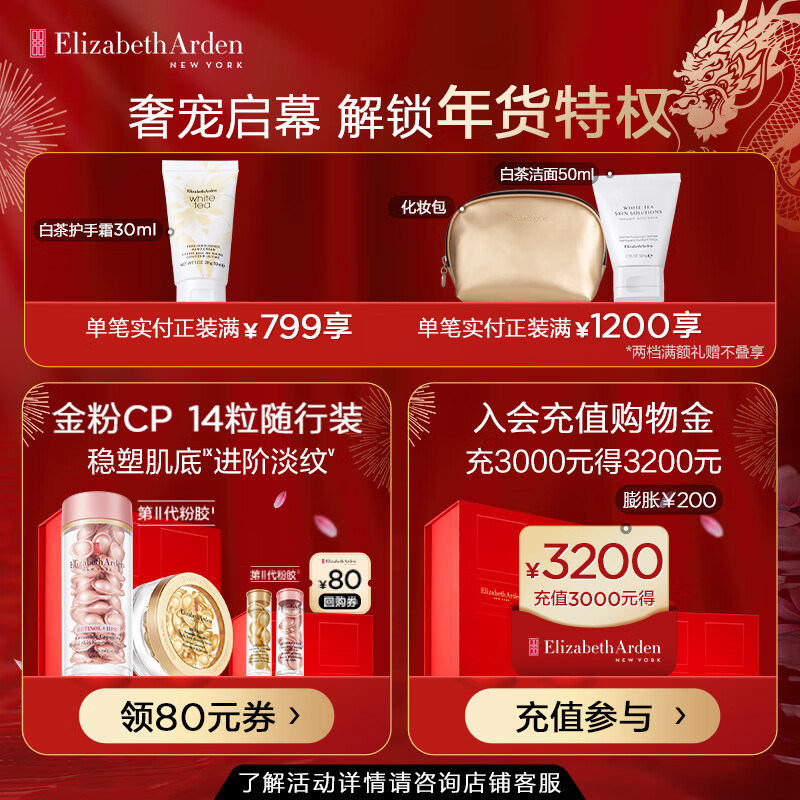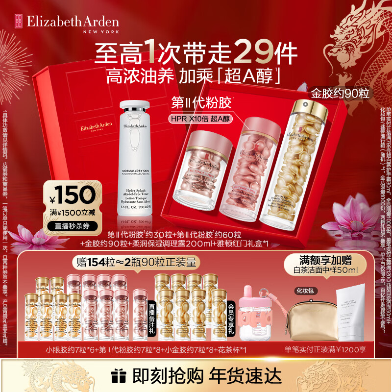 伊丽莎白雅顿粉胶30粒+粉胶60粒+金胶90粒神经酰胺A醇精华淡纹精华套装价格:2200.00元!