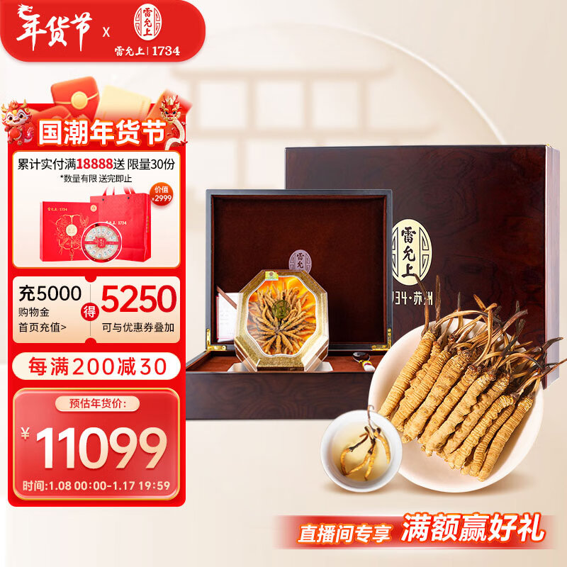 雷允上 冬虫夏草22/30g 年货礼盒 西藏那曲干货虫草AAA级扎花 礼品送长辈礼物价格:13049.00元!